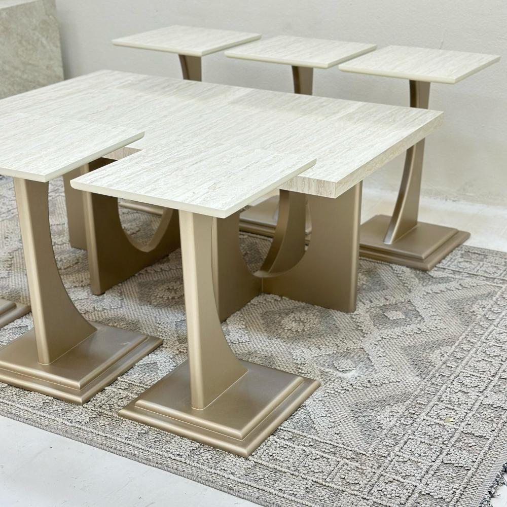 يُعتبر طقم طاولة القهوة الفاخر هذا إضافة مثالية لأي غرفة معيشة. يتضمن طاولة وسط و6طاولات جانبية، جميعها مصنوعه من بديل الرخام عالي الجودة والخشب الصلب ، يضيف الشكل للطاولة لمسة من الأناقة إلى أي مساحة، بينما يضمن البناء الصلب القوي المتانة وطول العمر.