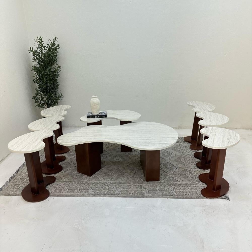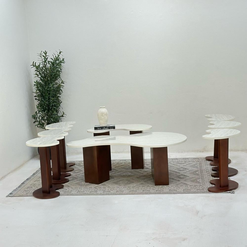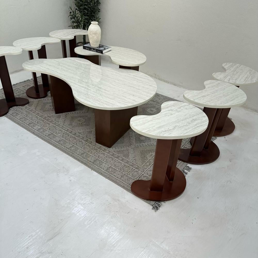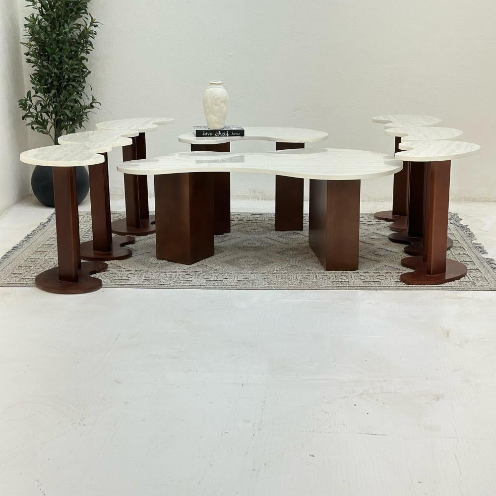 يُعتبر طقم طاولة القهوة الفاخر هذا إضافة مثالية لأي غرفة معيشة. يتضمن طاولتين وسط و6طاولات جانبية، جميعها مصنوعه من بديل الرخام عالي الجودة والخشب الصلب ، يضيف الشكل للطاولة لمسة من الأناقة إلى أي مساحة، بينما يضمن البناء الصلب القوي المتانة وطول العمر.